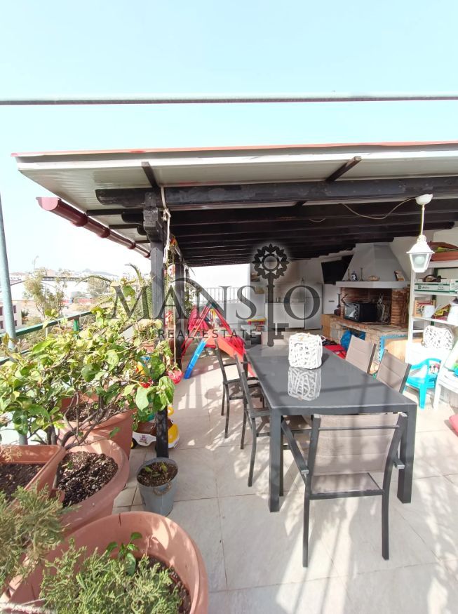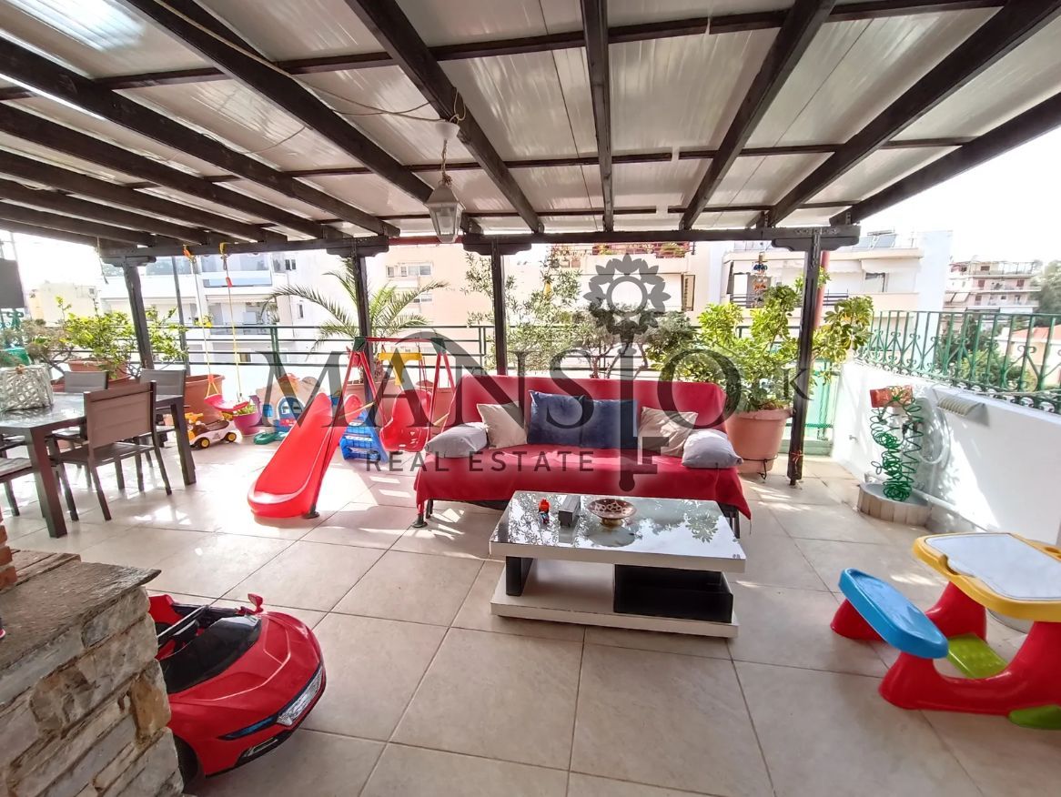 Πανέμορφη μεζονέτα 5ου-6ου ορόφου προς ενοικίαση στην Άνω Ν.Σμύρνη συνολικής επιφάνειας 116τμ. Η υπέροχη αυτή μεζονέτα αποτελείται από 3 άνετα ΥΔ (2υδ στο πρώτο επίπεδο & 1υδ στο δεύτερο), 1 ευρύχωρο σαλόνι με τραπεζαρία, 1 αυτόνομη πολύ φωτεινή ανοιχτή κουζίνα, 1 μπάνιο, 1 wc, 1 δώμα 10τμ., 1 άνετο μπαλκόνι & 1 ιδιωτική ταράτσα 50τμ. με πέργολα & bbq για όμορφες καλοκαιρινές βραδιές με απεριόριστη θέα στον Λυκαβηττό. Επιπλέον διαθέτει κουφώματα αλουμινίου με διπλά θερμοδιακοπτόμενα ενεργειακά τζάμια, τέντες, πόρτα ασφαλείας, θυροτηλεόραση, συναγερμό, ηλιακό θερμοσίφωνα, τζάκι, αυτόνομη θέρμανση φυσικού αερίου με ατομική εγκατάσταση, a/c, αποθήκη 5τμ., εσωτερική σκάλα, παρκινγκ πιλοτής για μηχανή, ασανσερ στο κτήριο, δάπεδα από παρκέ & πλακάκι. Φωτεινή, διαμπερές, προσόψεως, σε πολύ ήσυχη γειτονιά, πλησίον ΜΜΜ, αγοράς, σχολείων όλων των βαθμίδων. Δεν επιτρέπονται τα κατοικίδια. Ιδανική για οικογένεια. Διαθέσιμη απο 01/02/2026. Απαραίτητη προυπόθεση για την υπόδειξη του ακινήτου η επίδειξη αστυνομικής ταυτότητας ή διαβατηρίου. Mansio-k Real Estate 6948813827.
